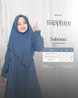 *Khimar/pashmina/Segi empat oval dijual terpisah dan tersedia dietalase yang sama PANDUAN MEMILIH UKURAN – HARAP DIBACA SEBELUM MEMESAN! Size On Model Gamis Style 1 ( Size M ) Bb 48kg Tb 162 cm Gamis Style 2 ( Size L ) Bb 60kg Tb 165cm Kemeja Style 1 ( Size L ) Bb 69kg Tb 171 cm Kemeja Style 2 ( Size L ) Bb 80 Kg Tb 181cm Gamis Anak ( XL) Bb 23kg Tb 117cm LD 72cm Usia 9Thn Kemeja Anak ( XL) Bb 41kg tb 130cm LD 80cm  Usia 9th ------------------------------------------------------------------- SARIMBIT SAPPHIRE YASMEERA X EL-RASHEED 2025 Sarimbit Sapphire 2025 terinspirasi dari batu Safir/ Sapphire, banyak makna dalam batu ini, yaitu melambangkan cinta yang mendalam dari pasangan yang sudah hidup bersama dan perjalanan cinta yang tak lekang oleh waktu. Makna tersebut sangat cocok dengan Sarimbit Sapphire ini, yang tak hanya menyatukan keluarga menjadi harmonis, tapi juga menciptakan cinta untuk keluarga. Sarimbit Sapphire hadir dengan membawa kemewahan tersendiri. Desainnya timeless dan elegan, Patternnya eksklusif, bikin tampak kompak sekeluarga. Cocok juga untuk semua acara dan momen spesial lainnya. Hari Raya adalah momen yang ditunggu-tunggu untuk abadikan momen berharga bersama keluarga. WARNA Off White Dark Blue Brindle Taupe Black BAHAN ▪️Katun Dobby Kevra (Polos) ▪️Mireille Crepe Printing Exclusive (Motif) DETAIL DETAIL KEMEJA DEWASA ▪️Kerah reguler point collar ▪️Lengan pendek available size XS-5XL; Lengan panjang a