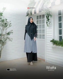Desainnya Spesial banget, terdapat layer luar bermotif bunga dan garis yang soft—menambah tekstur dan aksen unik. Berbahan Rose Crepe, yang ringan, jatuh indah, sementara Katun Dobby adem dan breathable.