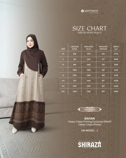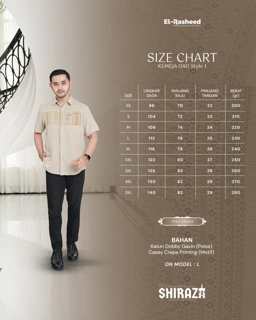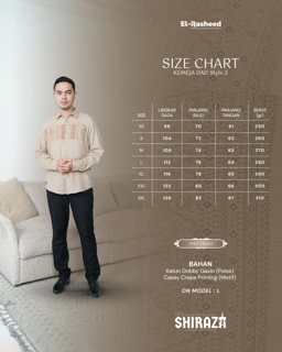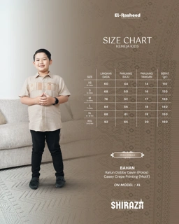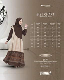 Shiraza Sarimbit Series 2026, hadir dengan pemilihan bahan yang Premium dan perpaduan bahan Katun Dobby Gavin (Polos) dan Casey Crepe Printing (Motif). Warnanya memberi kesan hangat, classy, elegan, dan mewah. Terinspirasi dari estetika kota-kota Muslim bersejarah, motifnya menggabungkan unsur geometris dan etnik, sehingga menghadirkan kesan premium namun tetap nyaman untuk dipakai sehari-hari maupun momen spesial keluarga.