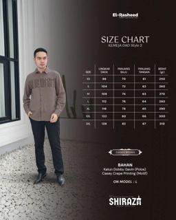 Shiraza Sarimbit Series 2026, hadir dengan pemilihan bahan yang Premium dan perpaduan bahan Katun Dobby Gavin (Polos) dan Casey Crepe Printing (Motif). Warnanya memberi kesan hangat, classy, elegan, dan mewah. Terinspirasi dari estetika kota-kota Muslim bersejarah, motifnya menggabungkan unsur geometris dan etnik, sehingga menghadirkan kesan premium namun tetap nyaman untuk dipakai sehari-hari maupun momen spesial keluarga.