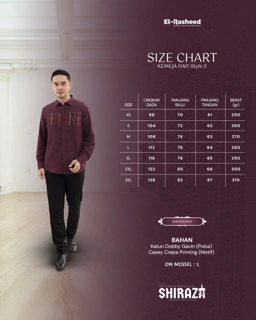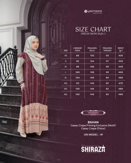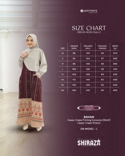 Shiraza Sarimbit Series 2026, hadir dengan pemilihan bahan yang Premium dan perpaduan bahan Katun Dobby Gavin (Polos) dan Casey Crepe Printing (Motif). Warnanya memberi kesan hangat, classy, elegan, dan mewah. Terinspirasi dari estetika kota-kota Muslim bersejarah, motifnya menggabungkan unsur geometris dan etnik, sehingga menghadirkan kesan premium namun tetap nyaman untuk dipakai sehari-hari maupun momen spesial keluarga.