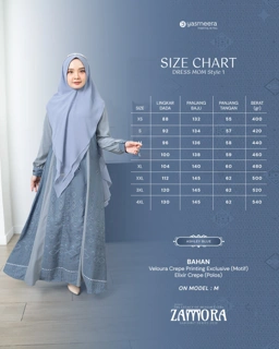SIZE CHART KHIMAR RAHIMA DEWASA